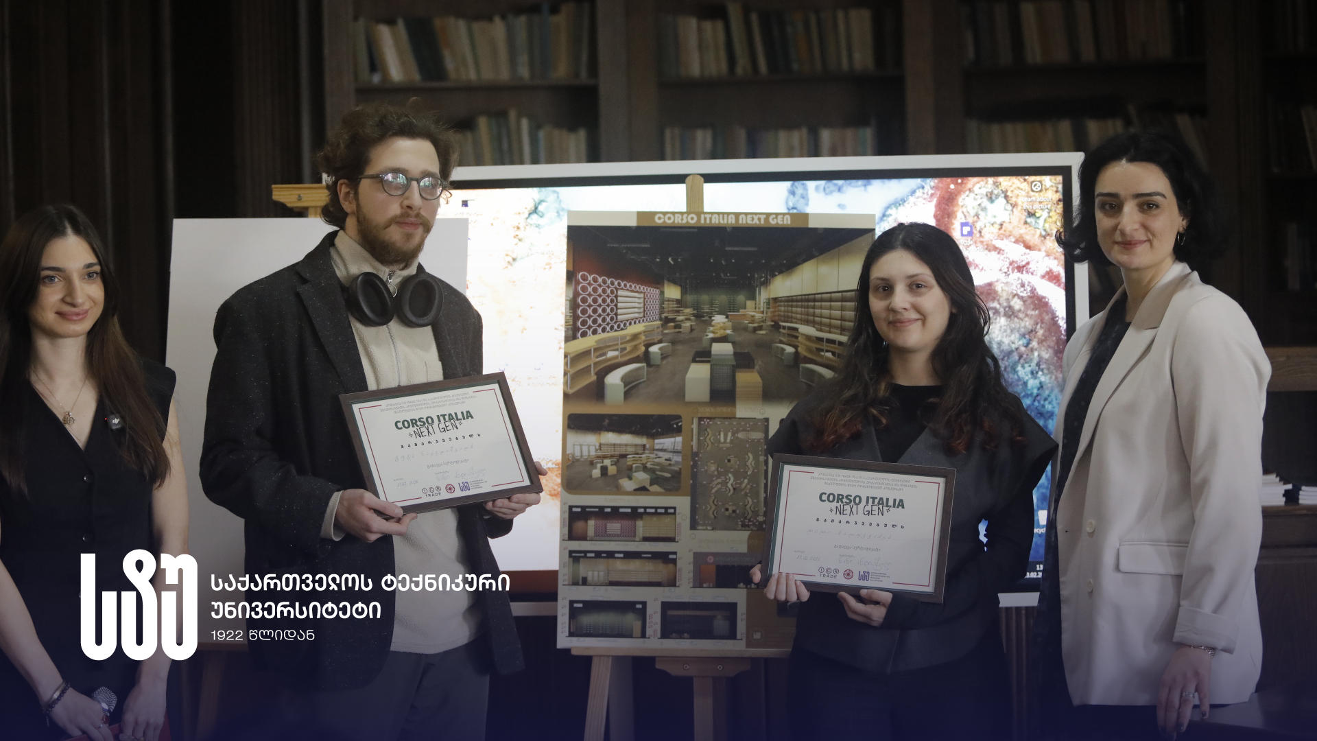 საქართველოს ტექნიკურ უნივერსიტეტში ინტერიერის დიზაინის მიმართულებით გამოცხადებული კონკურსის – „Corso Italia – Next Gen“ გამარჯვებული ორი პროექტი გამოავლინეს. საუკეთესოდ აღიარებული პროექტები შესრულებულია ორ-ორი სტუდენტის ავტორობით; თეა ჯელაძე და გიორგი ჭანიძე; ლალი სალუქვაძე და გუგა ნაცვლიშვილი.