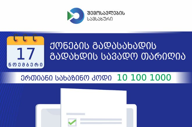 ,,ფინანსთა სამინისტროს შემოსავლების სამსახური შეგახსენებთ, რომ 3 ნოემბერს ამოიწურა საქართველოს საგადასახადო კოდექსით განსაზღვრული, ფიზიკური პირის ქონების გადასახადის წლიური დეკლარაციის წარდგენის ვადა, რომლის გადახდის ვალდებულებაც 17 ნოემბრის ჩათვლით არის შესაძლებელი.